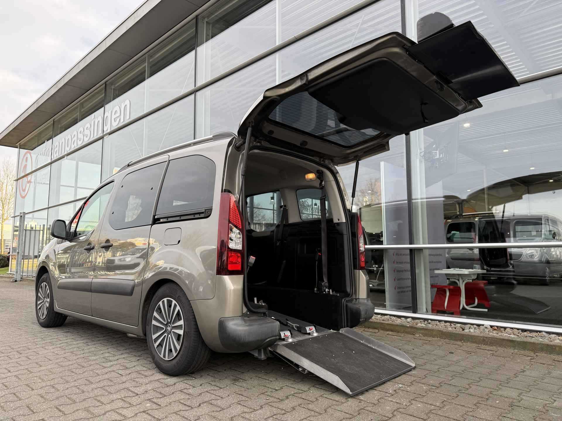 Nieuw binnen: deze mooie complete en ruime Peugeot Partner Tepee 3+1 of 5+0 Rolstoelauto 1.6 VTi Active uit 2013 met slechts 121 dkm op de teller welke o.a. is voorzien van extra extra getint glas, metallic lak, radio/cd/mp3, elektrische ramen, 2 schuifdeuren, cruise control, airconditioning, mistlampen, led-dagrijverlichting, regensensor, achteruitrijcamera, etc... Daarnaast is deze mooie Partner uitgerust met een brede bodemverlaging met een lichtgewicht oprijplaat, een automatisch knielsysteem en een 4-punts rolstoel-fixeersysteem waarmee veilig en comfortabel vervoer van ieder type rolstoel of scootmobiel mogelijk is. De aanwezigheid van een in delen opklapbare achterbank zorgt ervoor dat deze fraaie Peugeot Partner heel goed als 3+1 rolstoelauto dienst kan doen maar ook prima als volwaardige 5-persoons met een grote kofferruimte ingezet kan worden. Heeft u interesse in deze of een andere Rolstoelauto of Rolstoelbus? Bel of app voor meer info met 06-27392718 en maak een afspraak! Voor een passing en proefrit komen wij op uw verzoek graag bij u aan huis.