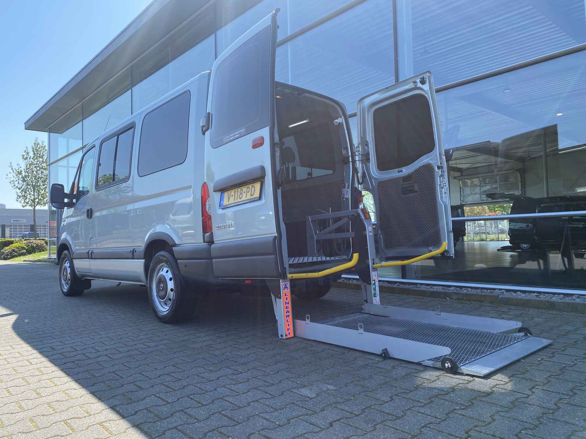 Net nieuw binnen: Deze keurig nette en goed onderhouden Renault Master Rolstoelbus Side-to-Side T28 2.5 dCi L1 H1 uit 2009 met nog maar 155 dkm op de teller! Deze ruime Renault Master is voorzien van een zogeheten side-to-side aanpassing waarbij het mogelijk is dat de rolstoelpassagier voorin naast de bestuurder plaatsneemt. Ook is er een volautomatische rolstoellift met een extra lang platform aanwezig waardoor ieder type rolstoel veilig en comfortabel vervoer kan worden. Daarnaast beschikt deze prachtige bus over mooie extra opties zoals o.a. een automaat, cruise control, airconditioning, metallic lak, centrale vergrendeling met afstandsbediening, elektrische ramen, privacy glass en nog heel veel meer. Heeft u interesse in deze of een andere rolstoelbus of rolstoelauto? Bel of app ons dan op 06-27392718 en maak een afspraak! (Op uw verzoek is een passing en proefrit bij u aan huis geheel vrijblijvend mogelijk)